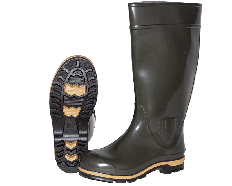 Высокие резиновые сапоги ПС 15 с классическим дизайном. Имеют специальный слой в подошве для улучшения теплоизоляции и дополнительной амортизации при ходьбе для повышенного комфорта. Защитные свойства: К80, Щ50, Нс, Нм, Нж Материал: ПВХ (PVC) трехкомпонентное литье Цвет товара: Оливковый Высота самого сапога 39 см