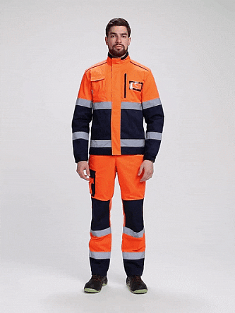 Сигнальный костюм – это полноценный рабочий комплект из куртки и брюк или полукомбинезона. Он не только обеспечивает видимость человека, но и защищает его от загрязнений. В некоторых моделях предусмотрены уплотнительные вставки на коленях и локтях.