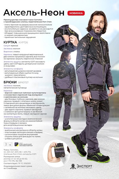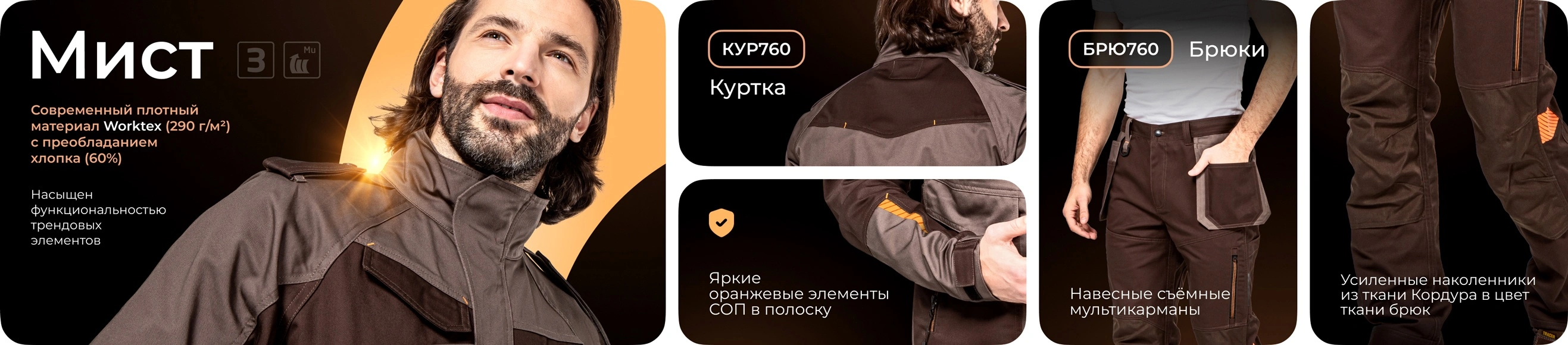Костюмы, куртки, брюки, комбинезоны, жилеты