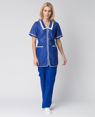 Халат женский на молнии короткий рукав (тк.Нейлон), васильковый