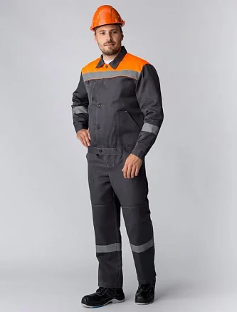 Костюм Лигор-1 СОП (тк.Смесовая,210) брюки Леон, т.серый/оранжевый