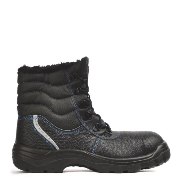 Кожаные ботинки Prosafe серии basic c удлиненным мягким кантом и глухим клапаном на подкладке из искусственного меха. Шнуровка, проходящая через металлические петли, обеспечивает комфортную адаптивную посадку при длительном ношении. Светоотражающие элементы повышают видимость работников в темное время суток и на неосвещенной территории. В модели предусмотрена меховая съемная стелька. Однослойная маслобензостойкая полиуретановая подошва литьевого метода крепления имеет вставку в пяточной части подошвы, обладающую амортизационными свойствами и способную гасить ударные нагрузки при ходьбе. Глубина протектора ходового слоя обеспечивает хорошую сцепляемость с поверхностями и препятствует скольжению за счет рельефа протектора. Металлический подносок обеспечивает защиту пальцев стопы от механических повреждений ударной прочностью до 200Дж.