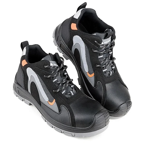 Кроссовки Prosafe серии profi с комбинированным верхом из натуральной кожи с микрофиброй дополнены оригинальными светоотражающими элементами и предназначены для защиты ног от общих производственных загрязнений и механических воздействий. Гигроскопичная дышащая подкладка из сетчатого материала поддер