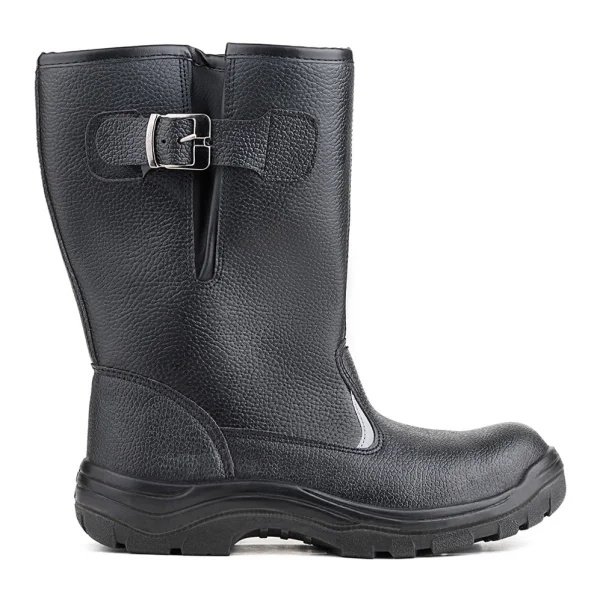Кожаные сапоги Prosafe серии basic предназначены для защиты ног от общих производственных загрязнений в отапливаемых помещениях и на открытом воздухе в летний период. Модель дополнена ремнем с металлической пряжкой для возможности регулировать и комфортно фиксировать ширину бесподкладочного голенища. Нижняя часть внутри сапога и вкладная стелька выполнена из текстиля. Светоотражающие элементы повышают видимость работников в темное время суток и на неосвещенной территории. Однослойная маслобензостойкая полиуретановая подошва литьевого метода крепления имеет вставку в пяточной части подошвы, обладающую амортизационными свойствами и способную гасить ударные нагрузки при ходьбе. Глубина протектора ходового слоя обеспечивает хорошую сцепляемость с поверхностями и препятствует скольжению за счет рельефа протектора. Термопластичный подносок обеспечивает защиту пальцев стопы.