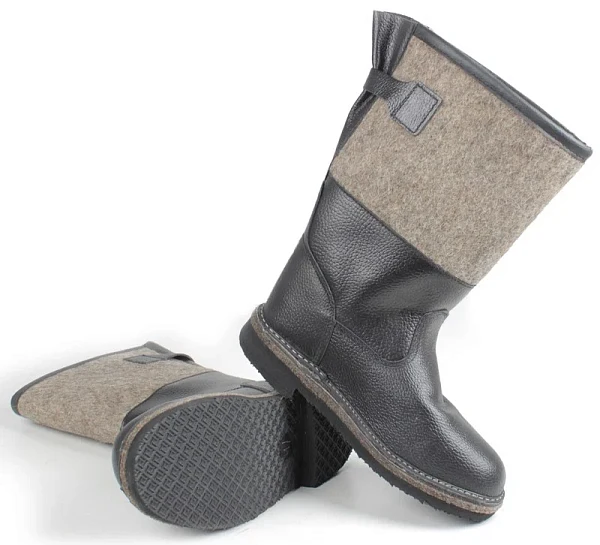 материал верха: войлок+юфть 6мм подошва: микропористая резина температурный режим: -40°C метод крепления: рантопрошивной стелька 8 мм оснавная и 4 мм вкладная Особенности: голенище сапог имеет дополнительное усиление из кожи. защитные свойства: ОПЗ, МБС размерный ряд: 39-47 Универсальная модель, рек