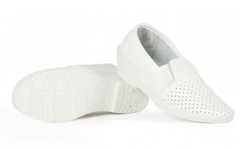 удобная эргономичная форма колодки верх: натуральная перфорированная кожа, обеспечивает воздухопроницаемость подошва: ПВХ эластичные вставки обеспечивают дополнительный комфорт при эксплуатации анатомическая кожаная стелька небольшая танкетка на литой подошве обеспечивают максимальный комфорт в тече