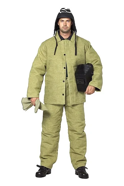 Костюм из куртки и брюк 1 класса защиты от искр и брызг расплавленного металла. Предназначен для защиты от рисков, возникающих при менее опасных методах сварки и работах, связанных с возникновением
