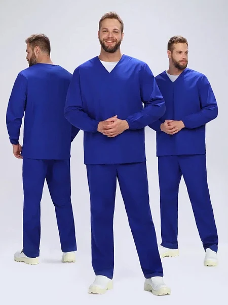 Модель разработана в соответствии с международными требованиями безопасности пищевого производства согласно системе НАССР (ХАССП). БЛУЗА: V-образный вырез горловины низ рукава с лентой эластичной отсутствие карманов БРЮКИ: свободного кроя пояс на резинке отсутствие карманов Ткань: Смесовая