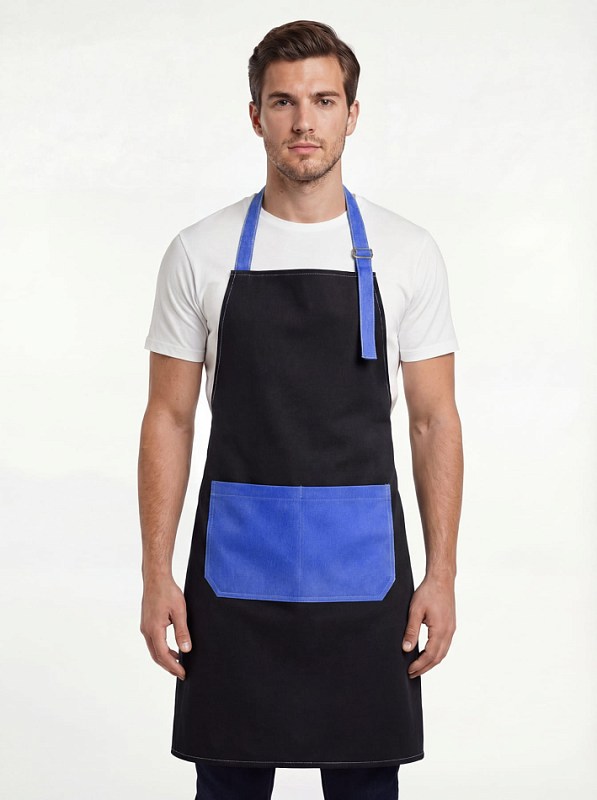 ФАРТУК: - с грудкой - завязки для регулировки объема по талии - центральный двойной карман - регулировка объема по шее