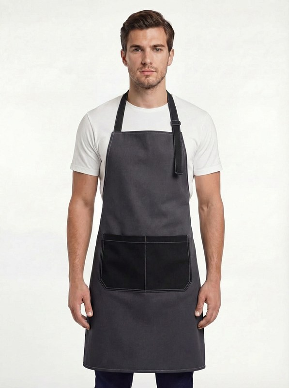 ФАРТУК: - с грудкой - завязки для регулировки объема по талии - центральный двойной карман - регулировка объема по шее