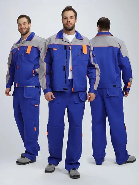 Костюм Драга-1 (тк.Смесовая МВО,240) брюки, васильковый/св.серый/оранжевый купить в Минске в интернет-магазине “Спектр”