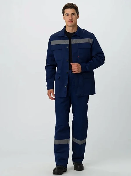 КУРТКА: удлиненная центральная застежка на петли и пуговицы, защищена планкой отложной воротник нагрудные карманы с клапаном нижние карманы с клапаном СОП 50 мм по кокетке БРЮКИ: прямой силуэт гульфик с застежкой на петли и пуговицы пояс со шлевками под ремень боковые карманы с наклонным входом СОП