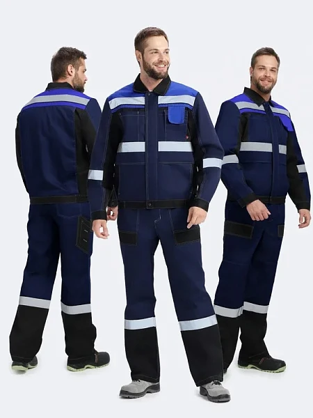 КУРТКА: куртка укороченная с притачным поясом на резинке с супатной застежкой на молнию по кокеткам, полочкам, спинке, рукавам и брючинам расположены световозвращающие полосы, что позволяет использовать костюм в условиях плохой видимости на куртке множество функциональных карманов, в том числе карма