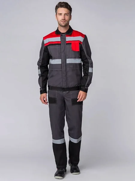 Костюм Виват-1 Премиум (тк.Смесовая,240) брюки, серый/черный/красный