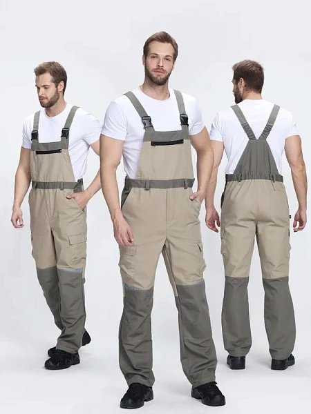ПОЛУКОМБИНЕЗОН: прямого силуэта с передней застежкой на тесьму- молния и боковой (в левом шве) застежкой на тесьму -молния и пуговицу на поясе грудка с прорезным карманом, застегивающимся на тесьму «молния» боковые карманы с наклонным входом в районе бедра расположены накладные карманы с объемом, за