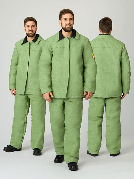 *Для выполнения работ, при которых расстояние от работающего до источника искр и брызг расплавленного металла более 2 м КУРТКА: куртка с центральной супатной застежкой на петли и пуговицы БРЮКИ: брюки прямого силуэта на поясе костюм утеплен притачной утепляющей подкладкой рекомендуется для защиты от