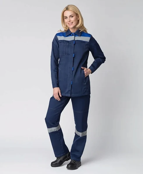 КУРТКА: Прямой силуэт с супатной застежкой на пуговицы и контрастными патами для стильного внешнего вида Кокетки из отделочной ткани со светоотражающими полосами (СОП 50 мм) для безопасности Практичная система карманов: нагрудный карман с отделением для ручек и петлей для бейджа, а также карманы в р