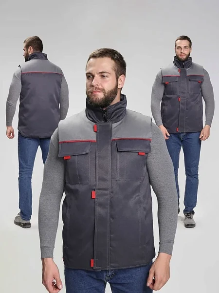 ЖИЛЕТ: Прямой утепленный силуэт с центральной застежкой на молнию и ветрозащитной планкой на липучке с контрастными патами Кокетки из отделочной ткани с контрастным кантом и верхние накладные карманы с утепленными клапанами на липучке Практичная система карманов: правый нагрудный со складкой, левый