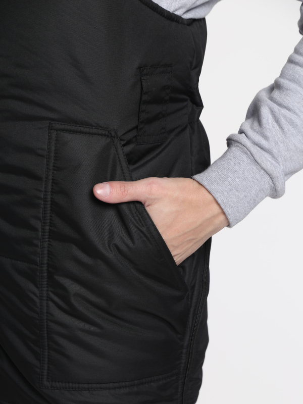 КУРТКА: - куртка прямого силуэта - с центральной двухзамковой застёжкой на молнию - тремя ветрозащитными планками: двумя внешними и внутренней - 2 внешние утепленные планки и 1 внутренняя - на левой полочке карман с центральным объемом под рацию - на правой полочке нагрудный карман, вход закрывается на молнию - на уровне талии два кармана с объемом по обеим сторонам - нижние накладные карманы застегиваются на ленты контакт, состоят из двух частей внешней утепленной с косым входом, и внутренней с горизонтальным входом, вход в карман имеет снегоулавливатель - низ удлиненный по спинке, фигурный, обработан обтачкой - рукава втачные одношовные - в районе локтя настрочен усилитель из отделочной ткани - на левом рукаве выше локтя накладной карман - воротник втачной – стойка - внутренний воротник из флиса - капюшон утеплённый, по лицевому вырезу боковые части капюшона регулируется по объему - капюшон пристёгивается к куртке при помощи молнии - внутренний карман - ветрозащитная юбка - трикотажные манжеты на рукаве ПОЛУКОМБИНЕЗОН: - с центральной застёжкой на тесьму «молния» - высота сиденья регулируется бретелями с открытыми участками помочной резинки и фастексами - усиленные накладки из Таслана 189 гр/м2 - СОП 50 мм
