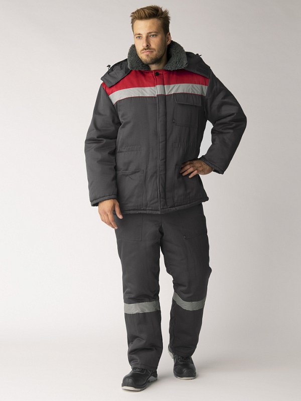Костюм зимний Труженик-Ультра (тк.Смесовая,210) брюки, т.серый/красный