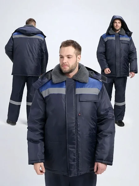 КУРТКА: центральная застежка молния с ветрозащитной планкой воротник утепленный из искусственного меха регулируемый съемный утепленный капюшон накладные нагрудный и боковые карманы регулировка объема по линии талии трикотажные манжеты СОП 50 мм по кокетке