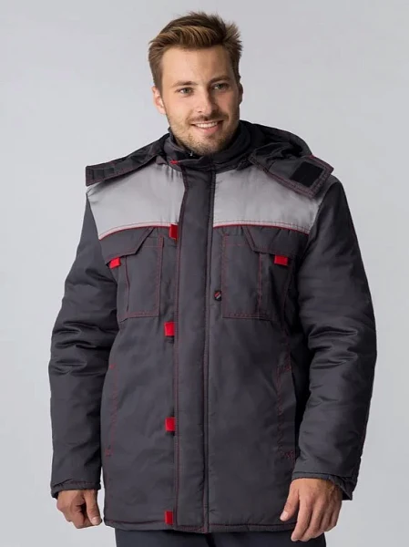 Куртка зимняя Флофт Премиум (тк.Смесовая,240), т.серый/св.серый/красный