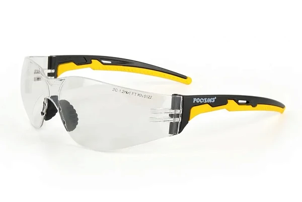 ОЧКИ: современные легкие универсальные очки с увеличенным панорамным обзором защитное стекло из прозрачного бесцветного поликарбоната с водостойким двусторонним твердым и незапотевающим покрытием, не теряющим свои свойства при продолжительном использовании устойчивы к химическим веществам, растворам