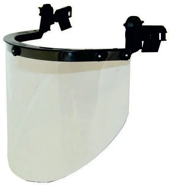 ЩИТОК НА КАСКУ -ударопрочный поликарбонатный экран PC = 2 мм надежная защита от летящих твердых частиц универсальное крепление на каску PARTNER экран термостойкий, оптически прозрачный повышенная стойкость к истиранию и царапанию снижение интенсивности теплового излучения на 25% устойчив к растворам