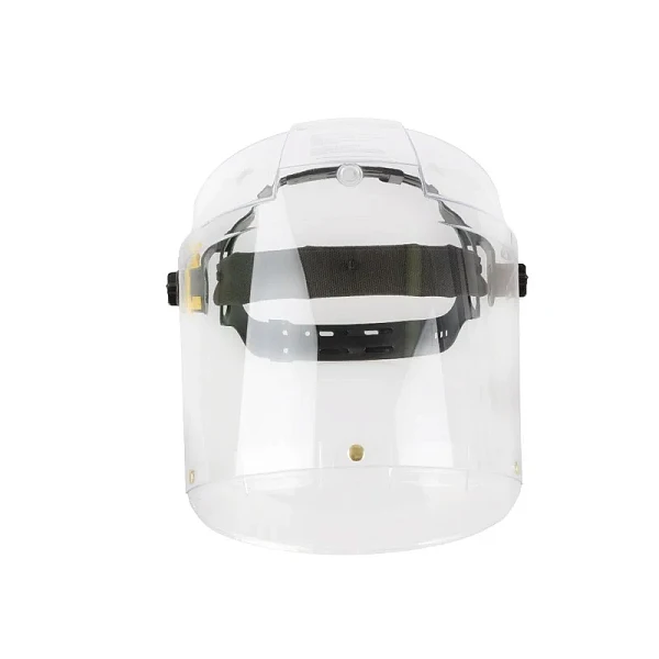 ЩИТОК: увеличенный экран из твердого оптически прозрачного материала ударопрочный и термостойкий поликарбонат – защита от высокоскоростных летящих частиц с высокоэнергетическим ударом, имеет скошенную книзу форму для увеличения эргономики изделия, исключает неудобства при повороте и наклоне голов