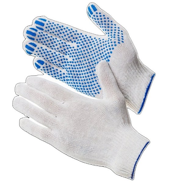 10 класс вязки, 3 нити. ПВХ покрытие ладони в виде точек. Перчатки предназначены для выполнения работ не связанных с большими механическими нагрузками Количество в пачке/мешке: 100 пар/600 пар (отгрузка только кратно