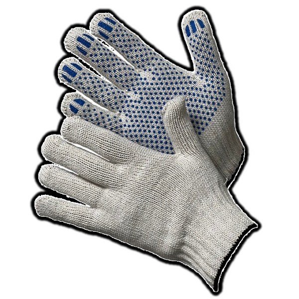 10 класс вязки, 4 нити. ПВХ покрытие ладони в виде точек. Перчатки предназначены для выполнения работ со средними значениями механических нагрузок. Количество в пачке/мешке: 100 пар/