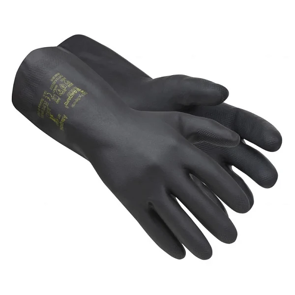 Перчатки из латекса предназначены защиты рук при контакте с растворами кислот, щелочами. Перчатки имеют внутреннее хлопковое напыление с антибактериальной пропиткой, что обеспечивает повышенный комфорт при длительном ношении. Стойкость к кислотам до 80% концентрации, стойкость к щелочам до 40% конце