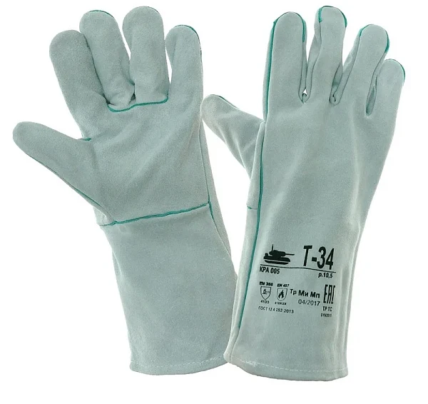 Перчатки сварщика (краги) Т-34 спилковые серые без подкладки предназначены для защиты рук от механического воздействия (истирание, прокол, порез), искр и брызг расплавленного ме-талла и работ в условиях повышенных температур. Краги изготовлены из качественного шлифованного кожевенного спилка крупног