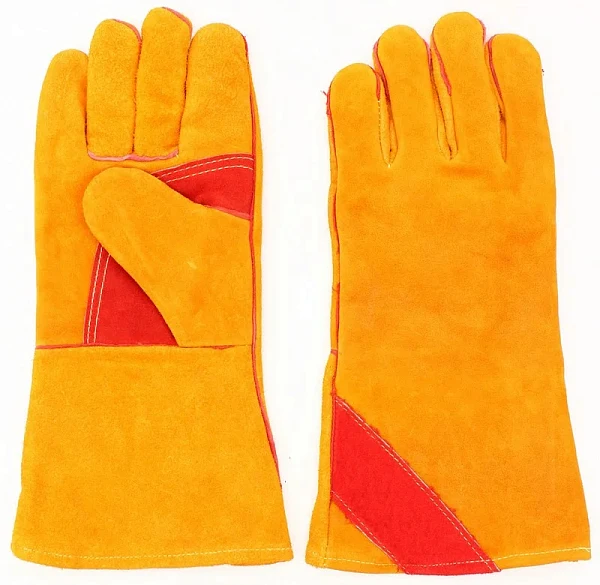 Краги спилковые желтые с красным усилением с подкладкой нить Кевлар