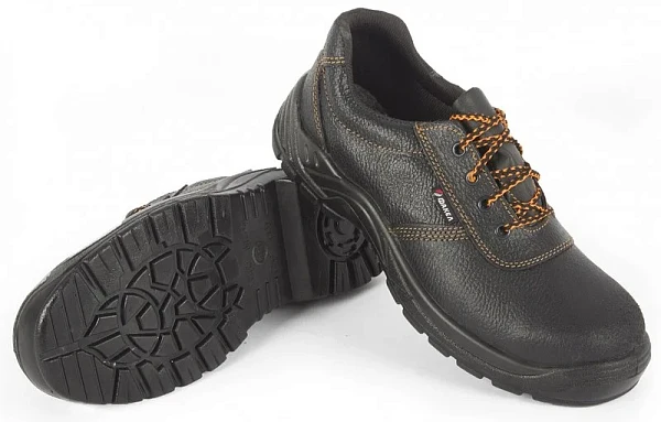 ПОЛУБОТИНКИ: подошва: однослойная, полиуретановая ПУ союзка, задник и берцы: натуральная кожа КРС 1,8-2 мм манжет/мягкий кант и глухой клапан: винилуретанискожа с промежуточным слоем из пенополиуретана металлический подносок – защита от ударов 200 Дж стелька: вкладная ЭВА подкладка: текстильный мате