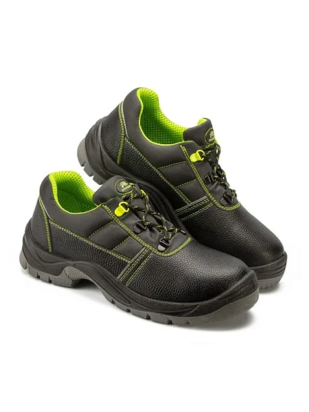 Кожаные полуботинки Prosafe серии Neon Lime c фигурной отрезной задинкой, мягким кантом и глухим клапаном предназначены для защиты ног от общих производственных загрязнений в отапливаемых помещениях и на открытом водухе в летний период. Текстильная сетчатая подкладка и стелька создают комфортные усл