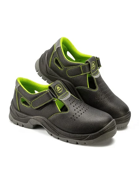 Кожаные открытые полуботинки-сандалии c фигурным мягким кантом и фронтальной перфорацией Prosafe серии Neon Lime обеспечивают оптимальную вентиляцию стопы при работе в жарких условиях. Текстильная сетчатая подкладка и съемная вкладная стелька создают комфортные условия носки в течении рабочей смены.