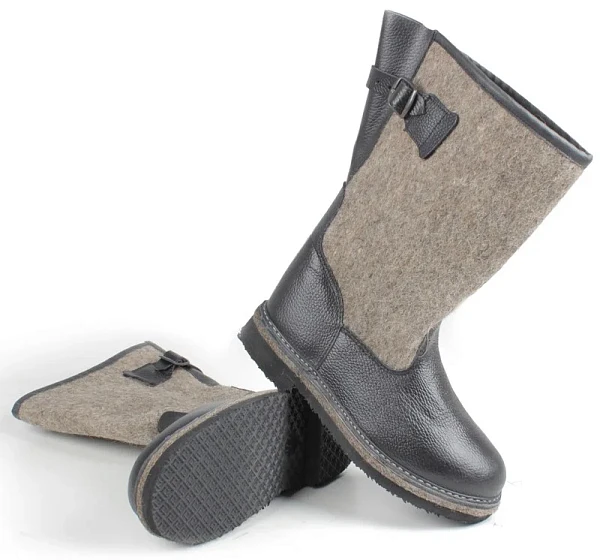 материал верха: войлок 6мм Союзка: войлок+лицевая юфть. Голенище-войлок 6-7мм. подошва: микропористая резина температурный режим: -40°C метод крепления: рантопрошивной стелька 8 мм оснавная и 4 мм вкладная защитные свойства: МБС размерный ряд: 39-47 полнота - 10