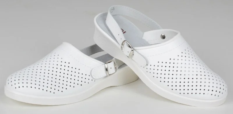 Рекомендовано для персонала гостиниц, больниц и работы в бытовых помещениях. Регулировка ремешка в двух плоскостях, что гарантирует идеальную посадку и удобное длительное ношение. Хороший воздухообмен. Материал верха  - Натуральная кожа Материал подкладки - Натуральная кожа Материал подошвы - ПВХ Вы