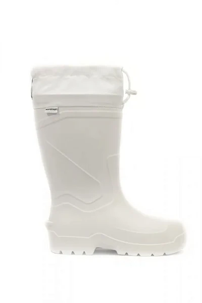 Сапоги изготовлены из высококачественного пластиката, допускающего круглогодичную эксплуатацию в любых агрессивных средах при любой температуре. Модель комплектуется съёмным двухслойным фольгированным чулком-утеплителем из нетканого полотна плотностью 700 гр/кв.м и манжетой с утягивающим шнурком с ф