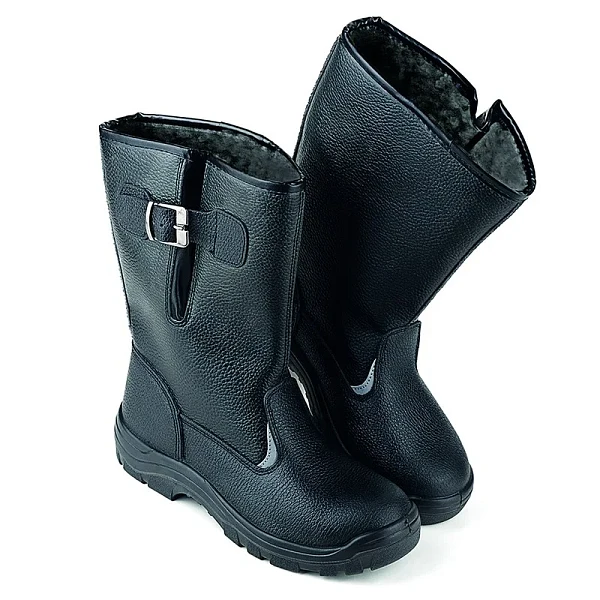 Кожаные сапоги Prosafe серии basic дополнены ремнем с металлической пряжкой для возможности регулировать и комфортно фиксировать ширину голенища. Подкладка и вкладная стелька изготовлены из искусственного меха. Светоотражающие элементы повышают видимость работников в темное время суток и на неосвеще