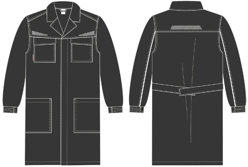 ХАЛАТ: - Классический прямой силуэт с супатной застежкой на пять кнопок - Светоотражающие элементы: сегментированные термоленты на нагрудных кокетках и спинке, а также кант в локтевых швах для безопасности в условиях недостаточной видимости - Функциональная система хранения: четыре вместительных кармана, включая два нагрудных с клапанами на кнопку и два нижних кармана для удобного размещения личных вещей - Регулировка посадки: пояс по линии талии с скрытыми кнопками для точной подгонки по фигуре и манжеты с внутренней резинкой для комфортной посадки