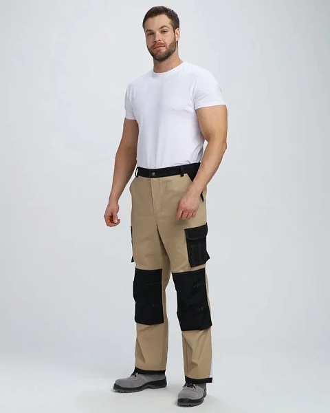 БРЮКИ: - прямого силуэта с передней застежкой «гульфик» на тесьму-«молния», с притачным поясом из отделочной ткани, застёгивающимся на джинсовую пуговицу, и 5-ю шлёвками на передних половинках расположены боковые карманыс отрезными бочками из отделочной ткани на левой передней половинке расположен