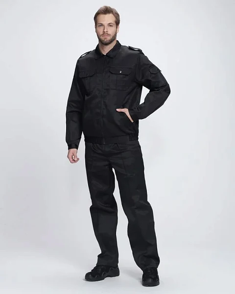КУРТКА: укороченная с притачным поясом, центральная бортовая застежка на тесьму «молнию», отложной воротник, с погонами, застегивающимися на кнопки. Накладные нагрудные карманы с фигурными клапанами, боковые прорезные карманы с листочкой. Пояс по боковым швам стянут эластичной тесьмой. Рукава с манж