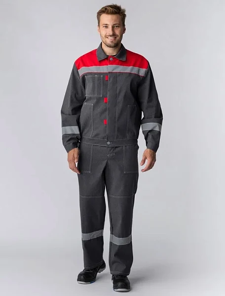 Костюм Липецк-1 СОП (тк.Смесовая,260) брюки, т.серый-меланж/красный