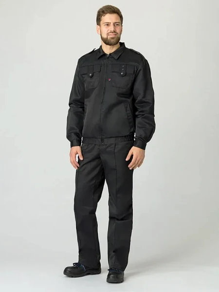 КУРТКА: укороченная на поясе центральная застежка-молния отложной воротник нагрудные карманы с клапанами на кнопках нижние карманы на молнии с наклонным входом манжеты на кнопках расширительная складка на спинке БРЮКИ: прямой силуэт гульфик с застежкой на молнию и пуговицу боковые карманы с наклонны