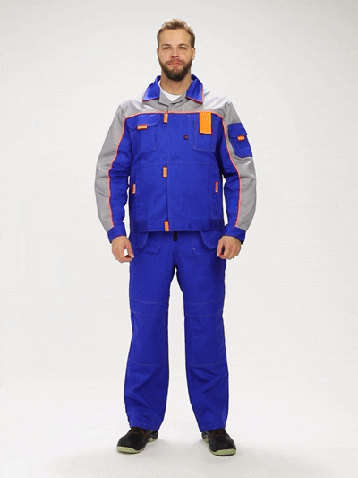 Костюм изготовлен из высокопрочной смесовой ткани. Улучшенная структура износостойкости материала обусловлена оптимальным содержанием хлопка и полиэстера, а так же саржевым переплетением. Использование данной технологии препятствует усадке и деформации. Применяется прочный кубовый краситель, что препятствует выцветанию ткани после многократных стирок или химчисток. Прочность соединений деталей костюма обеспечивают двойные отделочные строчки, использование армированных нитей и усиленные швы, которые выдерживают более 900 Н на разрыв, а стойкость к истиранию такого изделия более 8000 циклов (что в 2,7 раз выше минимально допустимого значения по ГОСТ). КУРТКА: - укороченная модель на поясе с регулировкой по объему патами на липучках - на куртке расположено 6 вместительных карманов, чтобы надежно хранить личные вещи, один из нагрудных карманов со специальным отделением под рацию или мобильный телефон, а так же уменьшенный карман с клапаном на левом рукаве под пропуск - центральная застежка на молнию с ветрозащитным клапаном и скрытая молния позволяет не царапать поверхность объектов. Рядом с которыми осуществляется работа - контрастные паты на ветрозащитной планке позволяют быстрее расстегнуть куртку, даже находясь в перчатках - на спине расположены расширительные вставки, чтобы не сковывать движения руками - усиленные накладки на локти препятствуют преждевременному истиранию, мест подверженных наиболее частому соприкосновению с поверхностями - на оборотной стороне расположена бирка для внесения ФИО, чтобы после промышленной стирки можно было легко идентифицировать изделие ПОЛУКОМБИНЕЗОН: - центральная двухзамковая молния позволят быстро снимать и надевать изделие, а эластичные бретели не спадают с плеч - усиленные накладки на колени, в виде карманов с застежкой на контактную ленту, позволяют использовать вкладыши ЭВА, чтобы не повредить ноги во время долгого соприкосновения с поверхностью - на полукомбинезоне расположены 11 карманов разного размера и предназначения, в заднем кармане удобно хранить инструменты, а в передние с отлетным механизмом, можно сложить мелкие скобяные изделия, разделив их по сегментам - на оборотной стороне расположена бирка для внесения ФИО, чтобы после промышленной стирки можно было легко идентифицировать изделие