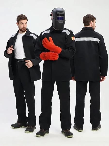 Для выполнения работ, при которых расстояние от работающего до источника искр и брызг расплавленного металла менее 0,5 м. КУРТКА супатная застежка на пуговицы вентиляционные отверстия по линии притачивания кокетки спины усиление на по рабочей поверхности рукавов и полочек швы с использованием ниток