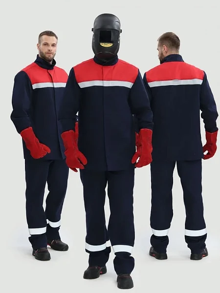 Костюм сварщика Велдсвар-СОП 1 кл.защиты (тк.Хлопок-ОП,350) брюки, т.синий/красный