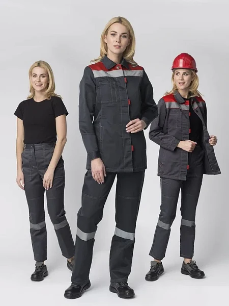 87490980 Костюм женский Веснис-1 СОП К. (тк.Смесовая,210) брюки, т.серый/красный
